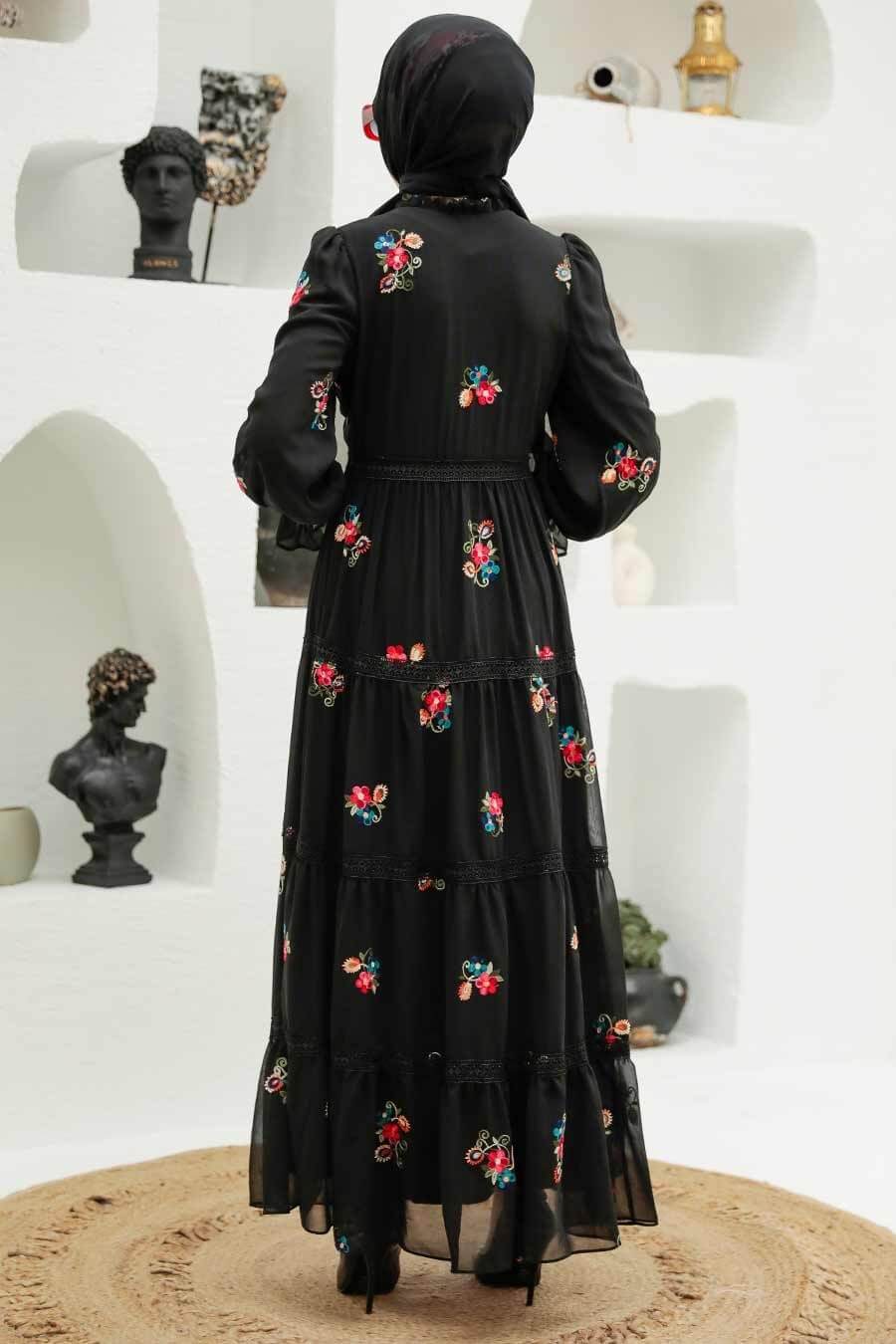 Bloom Modest Floral Dress - Black
