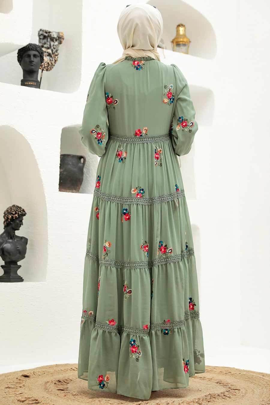 Bloom Modest Floral Dress - Mint Green