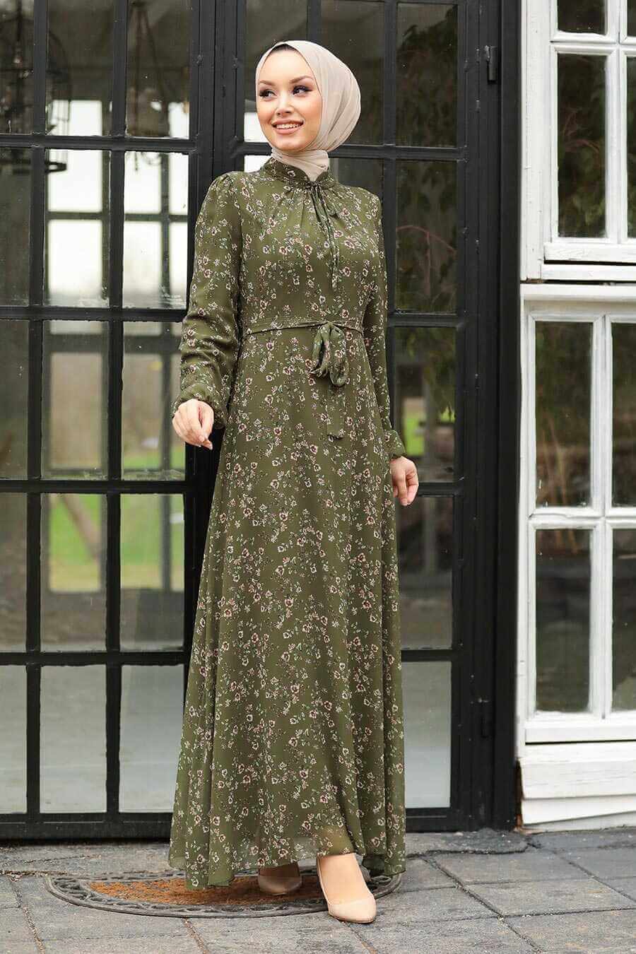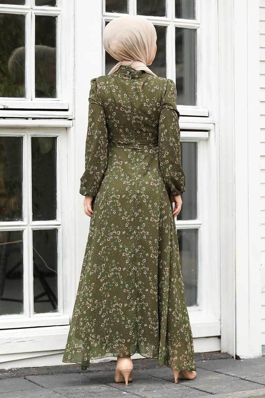 Modest Floral Dress - Forest Green