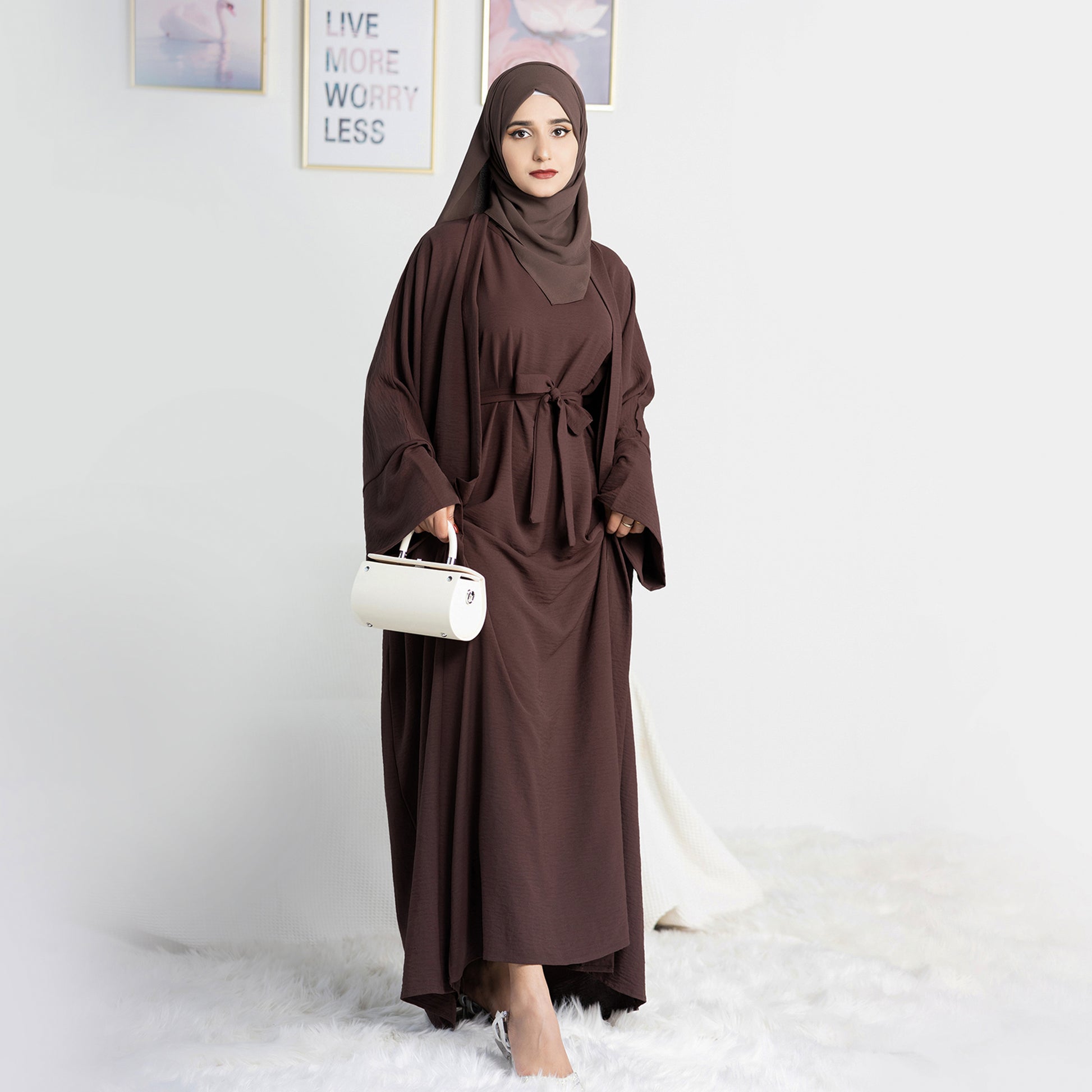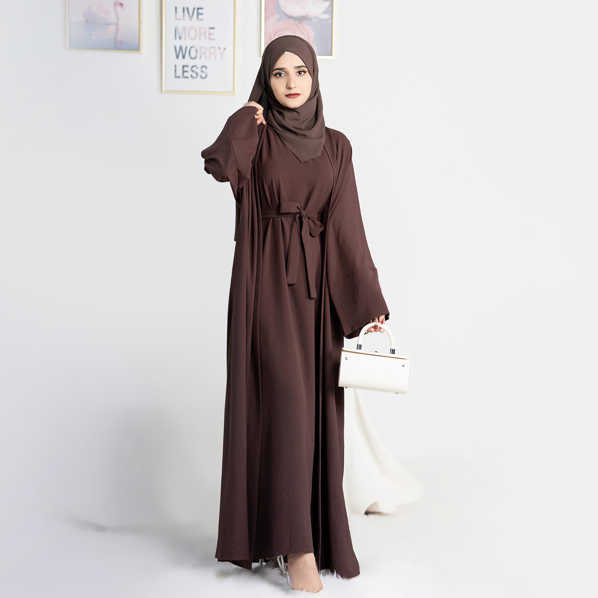 Two-Piece Abaya with Belt - Dark Coffee