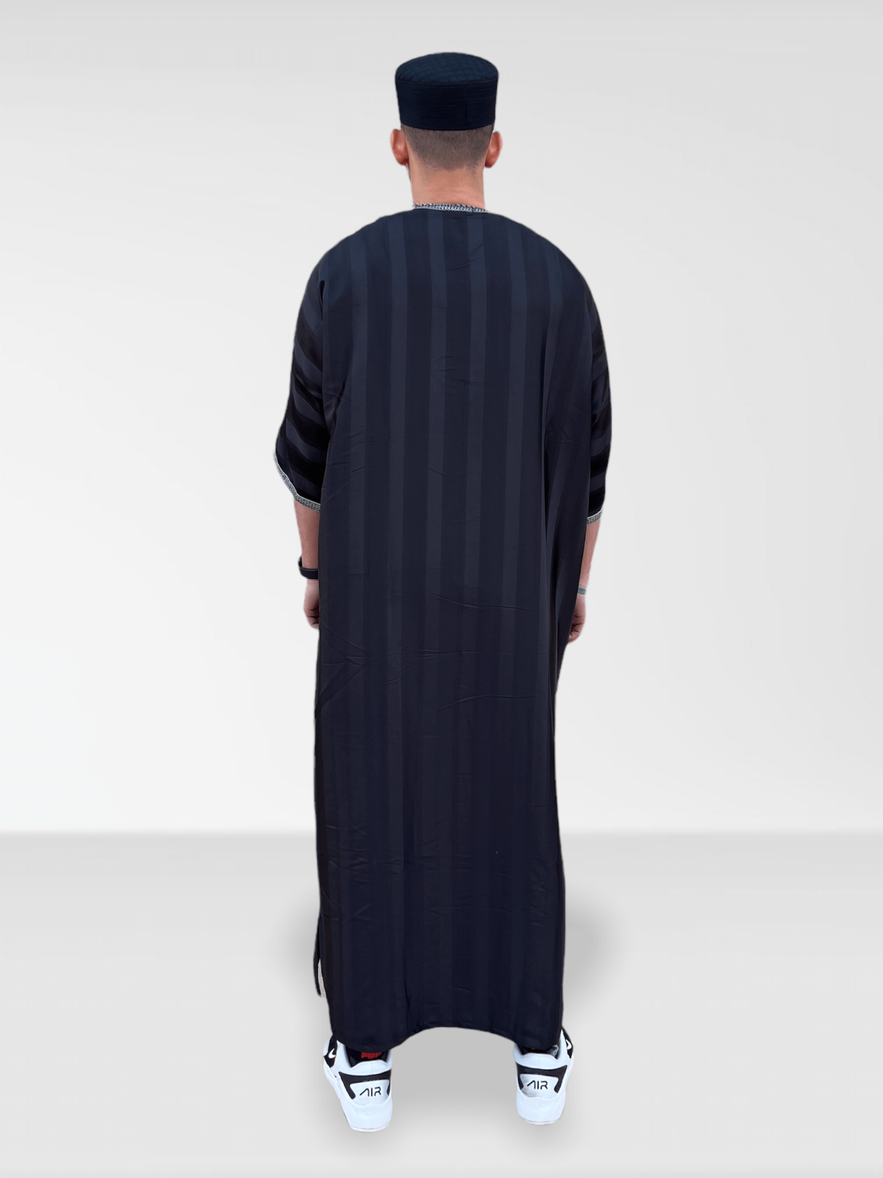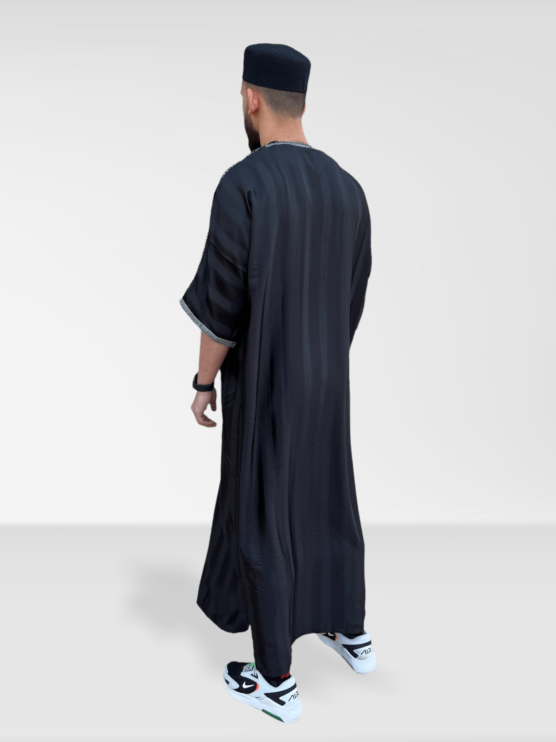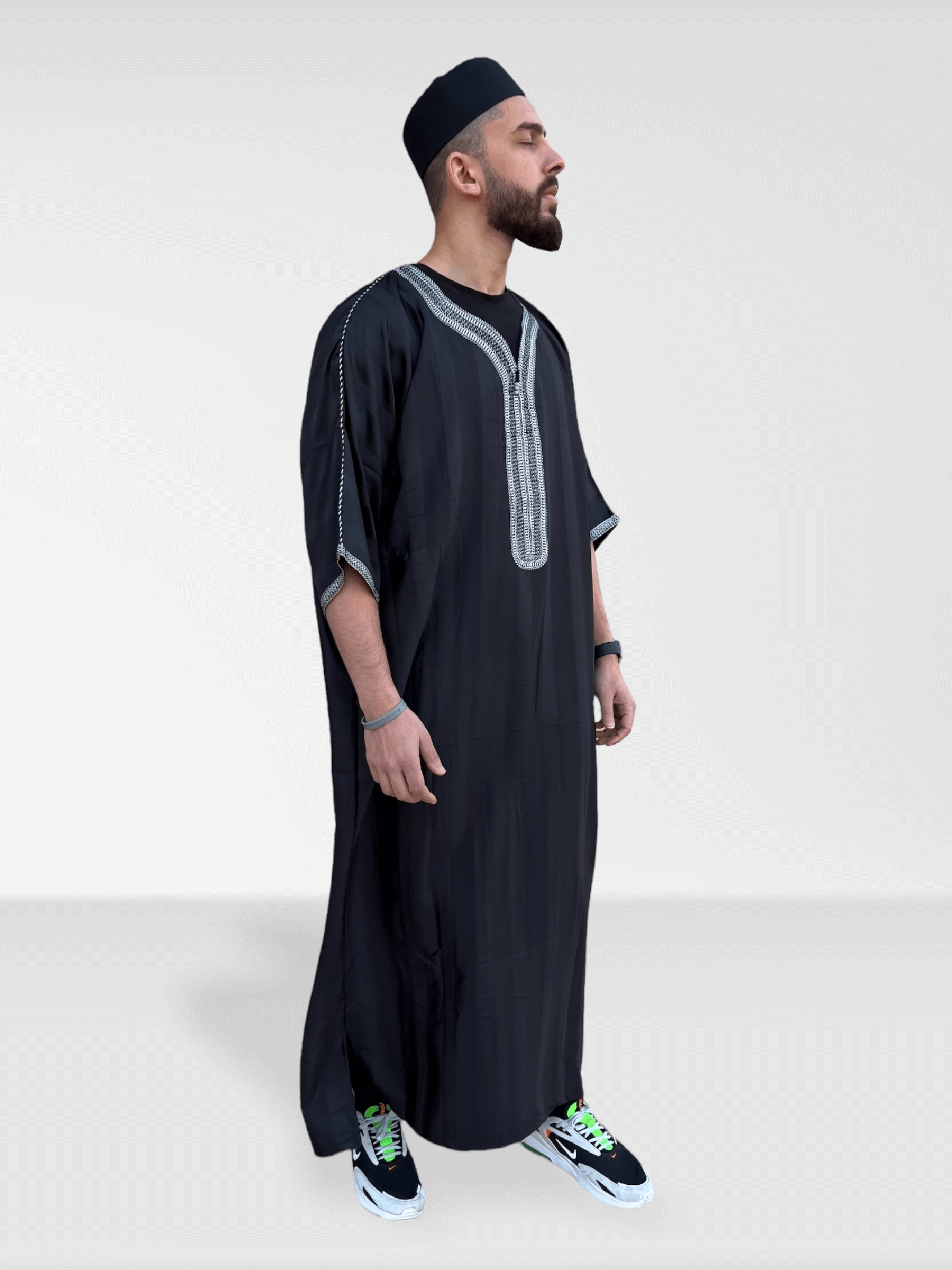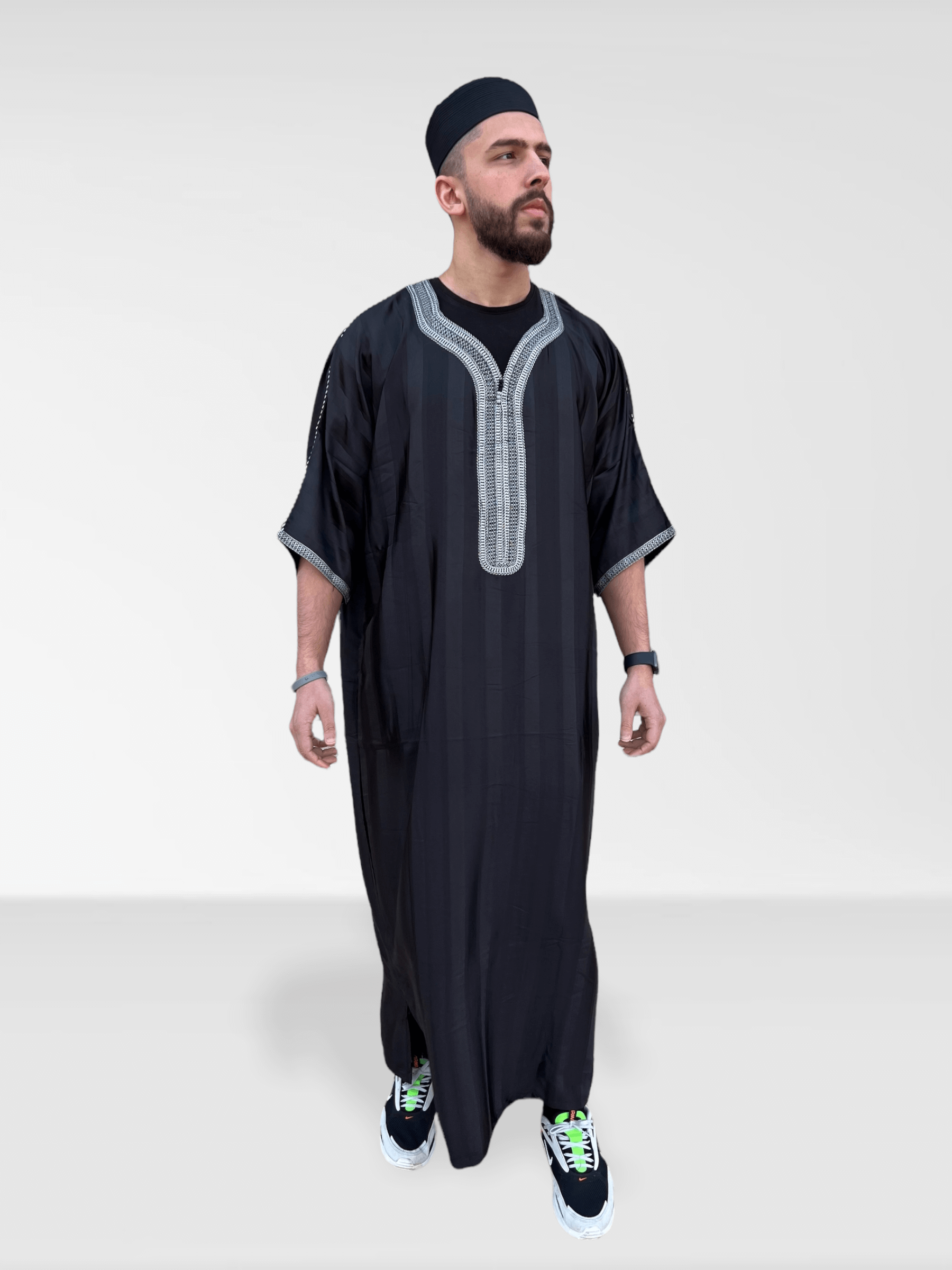 Moroccan Half Sleeve Thobe - Black/Silver
